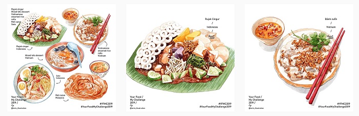 Illustrations of mouth-watering dishes by Le Rin at the “Your Food My Challenge 2019” exhibition.