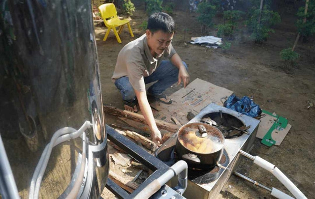 “When cooking on this stove, the excess heat will heat the water. When it reaches the required temperature, the hot water will move upwards into the tank, mixing with the cold water in the tank, and the cold water will automatically be supplied back into the stove. In this way, the water in the tank gradually heats up and is stored for long-term use," he said.