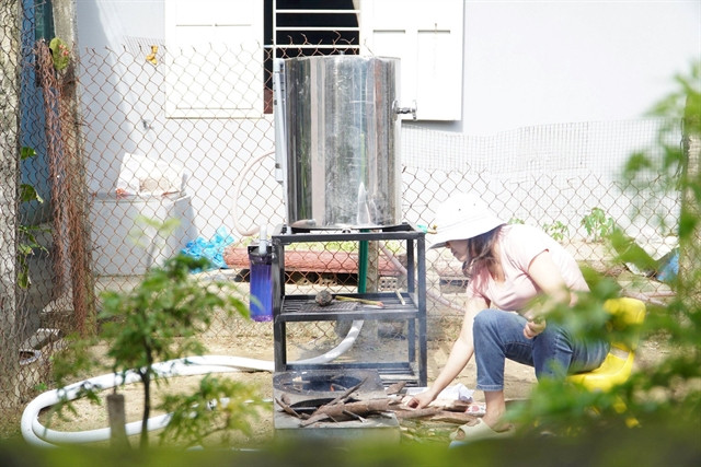 Kiều said the T-sona hot water stove system consists of a double stove, insulated stainless steel tanks with capacities of 75 litres and 150 litres, water pipes, and a water pressure regulator, which are easily assembled.