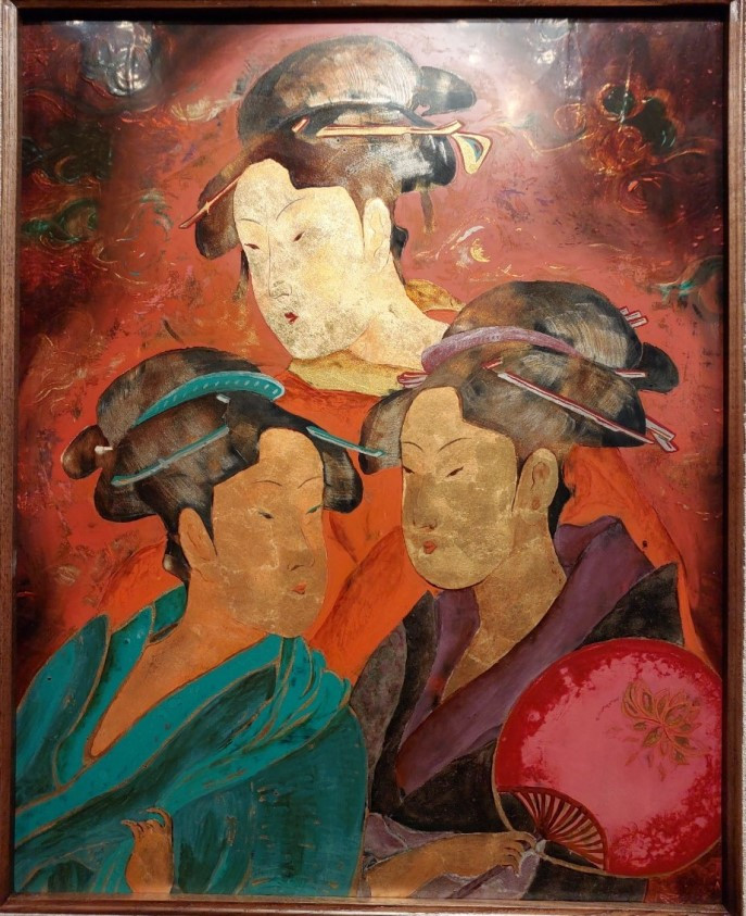 | Three Beauties of the Present, lacquer painting by Le Thi Hai Yen. |