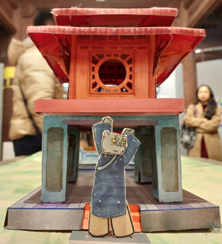 Thirty-eight works by young Vietnamese artists are on display at the Temple of Literature, showing unique individual creations inspired by Japanese ukiyo-e woodblock prints.