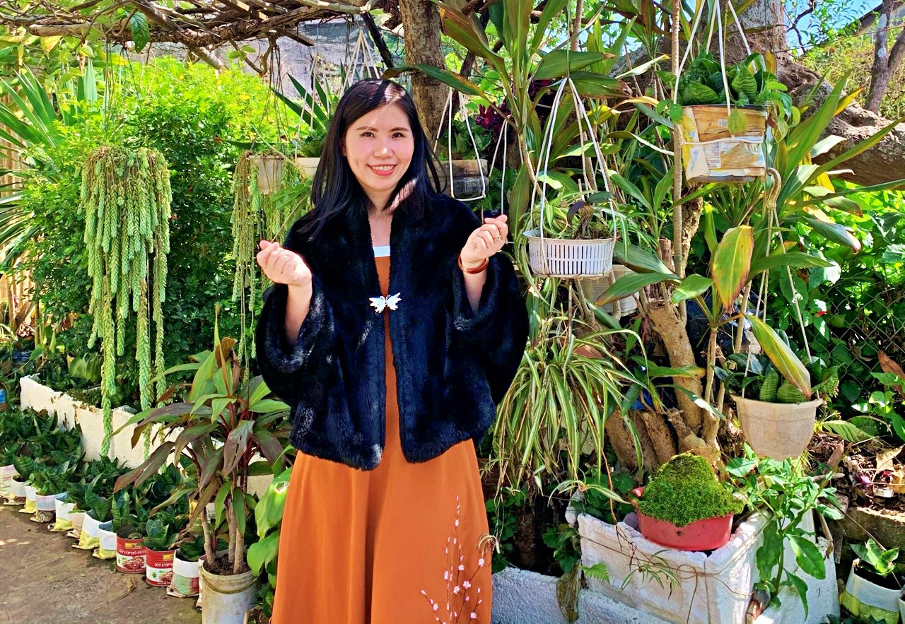 Ai Nhu in her garden of recycled pots.