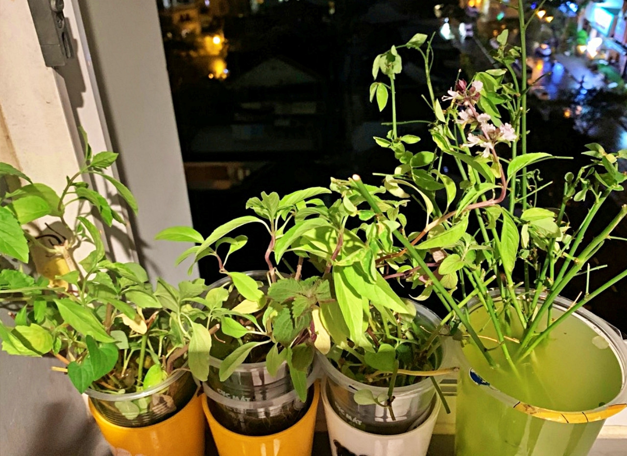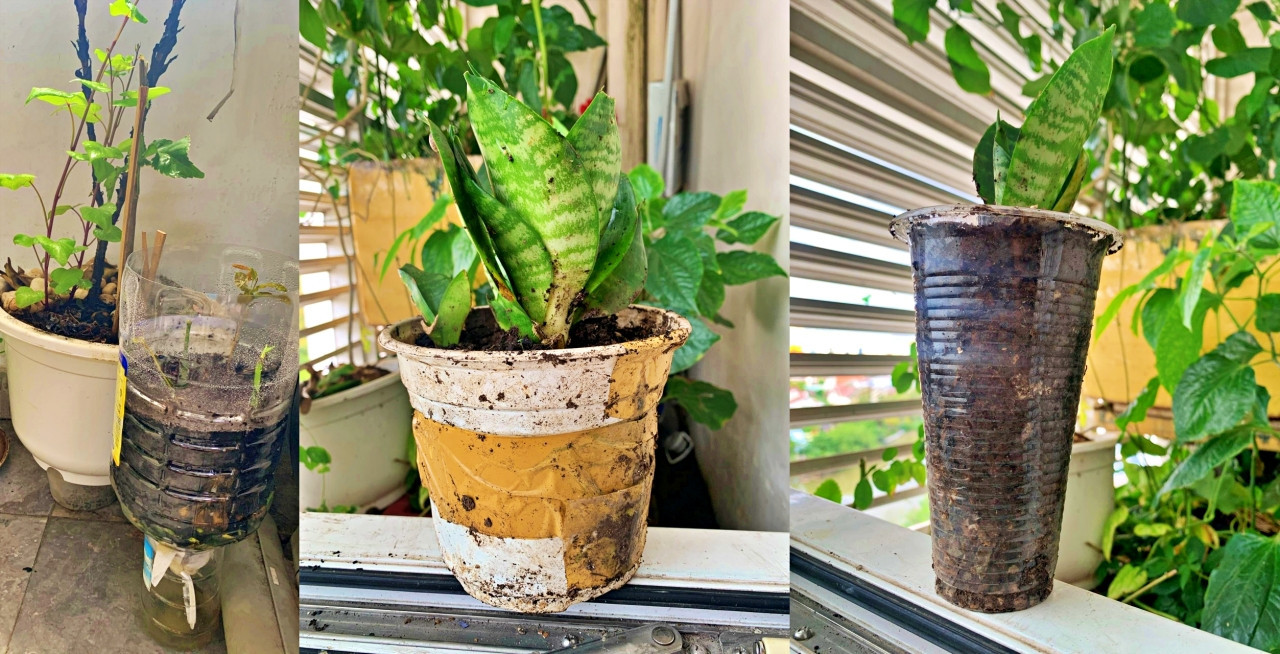 Nhu’s green space is planted on old and recycled items.
