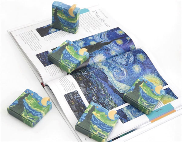 When asked about his creative inspirations, Tuan said that artisan soaps are decorated with numerous layers of colours, carefully calculated to every detail, with small representations of natural settings, landscapes, and iconic paintings and movies.