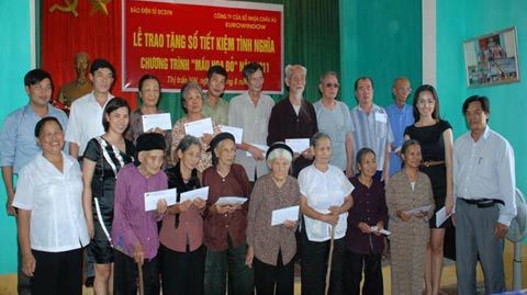 | Đại diện Eurowindow (áo đen bên phải) trao sổ tiết kiệm cho cho các gia đinh thương binh, liệt sĩ tại Quảng Trị |
