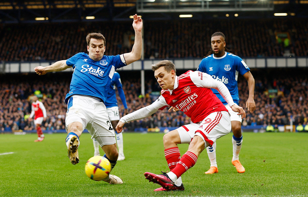 Bàn thắng (1-0, James Tarkowski): Bắt nguồn từ quả phạt góc bên cánh phải, trung vệ Tarkowski đè mặt Odegaard đánh đầu hiểm hóc mở tỷ số cho Everton.