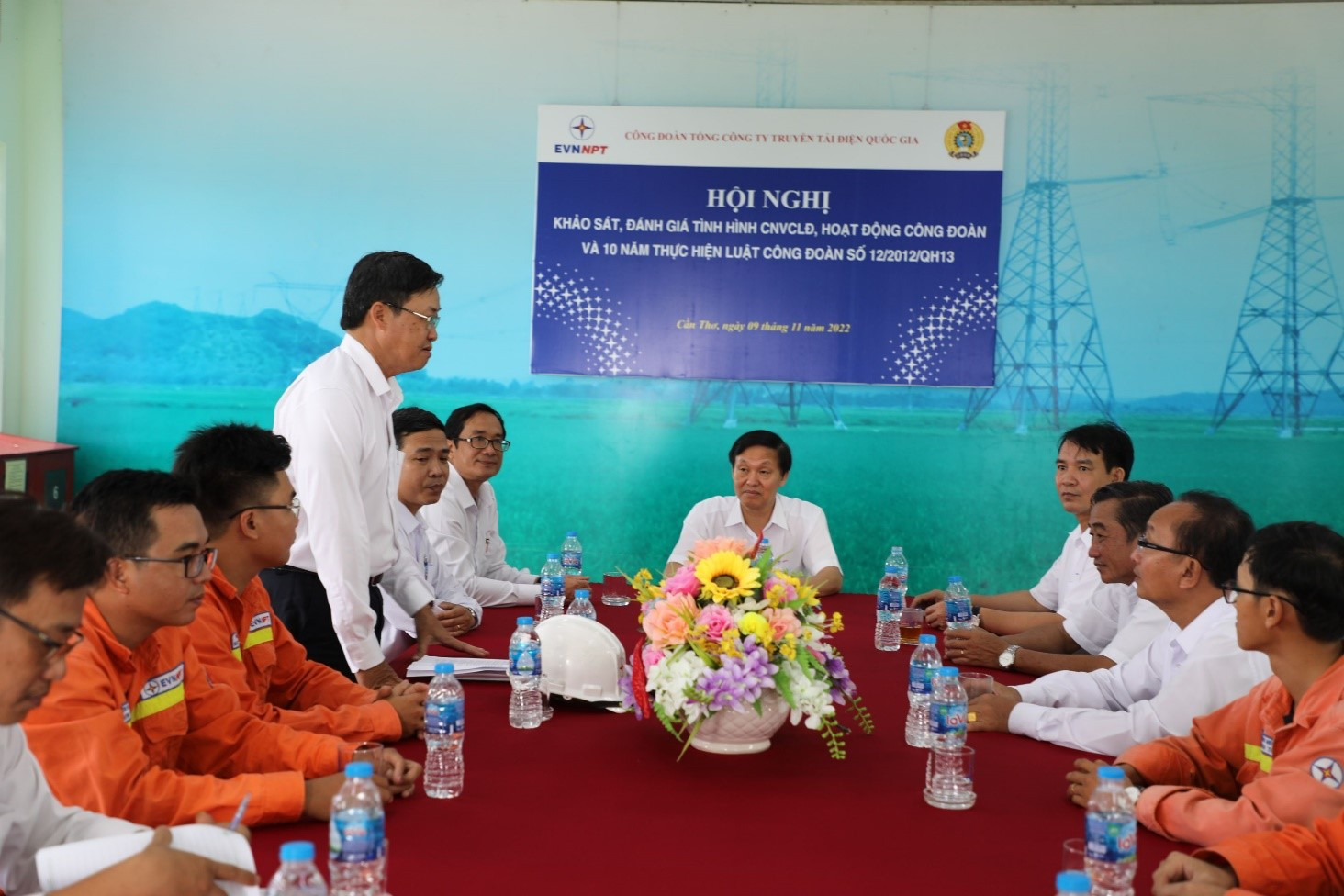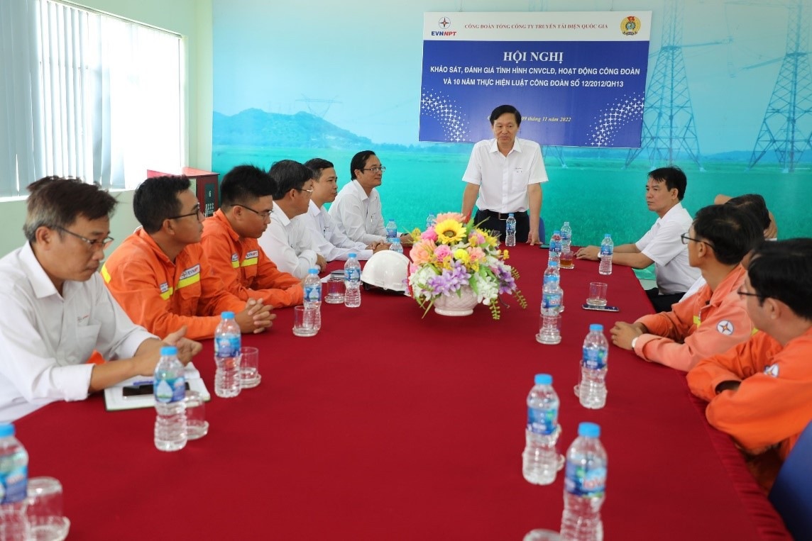 Chủ tịch Công đoàn EVNNPT Trịnh Tuấn Sơn ghi nhận những nỗ lực vượt khó của Công đoàn đơn vị, của tập thể người lao động đơn vị trong thời gian qua, góp phần để công ty, đơn vị vừa nâng cao năng suất lao động, vừa hoàn thành tốt nhiệm vụ quản lý vận hành lưới điện truyền tải. Tiếp thu những ý kiến trao đổi của đoàn viên, người lao động, Chủ tịch Công đoàn EVNNPT cũng thông tin về những khó khăn thách thức của tổng công ty trong năm 2022, đề nghị người lao động phát huy tinh thần sáng tạo, hoàn thành tốt nhiệm vụ được giao.
