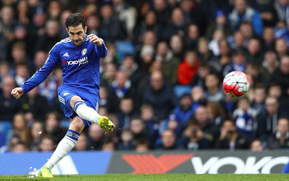 Chelsea tiếp tục được hưởng quả đá phạt bên ngoài vòng cấm có góc sút rộng. Lần này Fabregas bước lên thực hiện hoàn hảo, đưa bóng bay vào góc lưới cao san hòa 1-1.