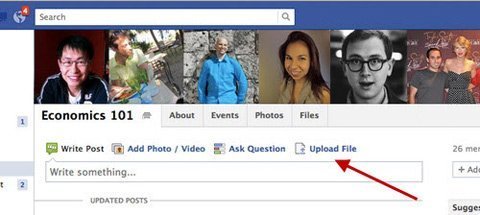 Chức năng chia sẻ văn bản Docs trong Facebook Groups đã được thay thế bằng "Upload File" - Ảnh: Softpedia