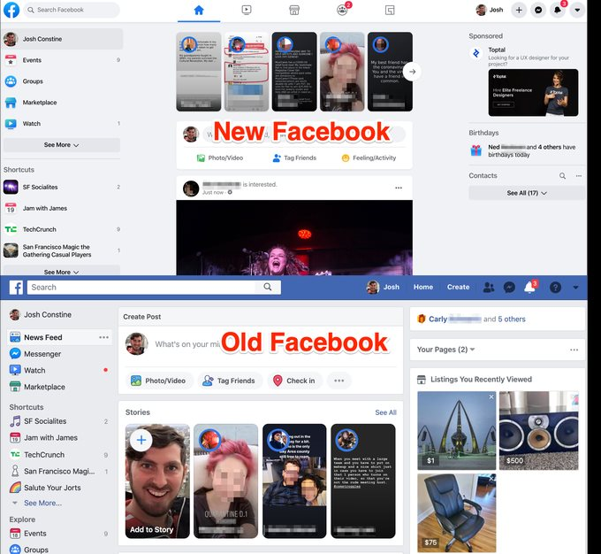 Facebook cho biết phần lớn người dùng sẽ được truy cập thiết kế mới trên máy tính từ 19/3. Đây là thiết kế được giới thiệu từ hội nghị F8 năm 2019. Tuy nhiên, Facebook không bắt buộc mọi người phải sử dụng ngay giao diện mới. Cuối năm nay, nó mới trở thành mặc định đối với tất cả người dùng.