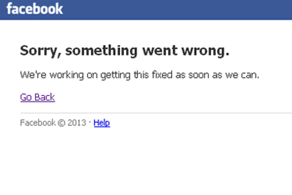 Khi truy cập vào mạng xã hội Facebook, người dùng nhận được thông báo “Sorry, something went wrong. We're working on getting this fixed as soon as we can” (Xin lỗi, đã có sự cố xảy ra. Chúng tôi đang tiến hành chỉnh sửa vấn đề này càng sớm càng tốt”.