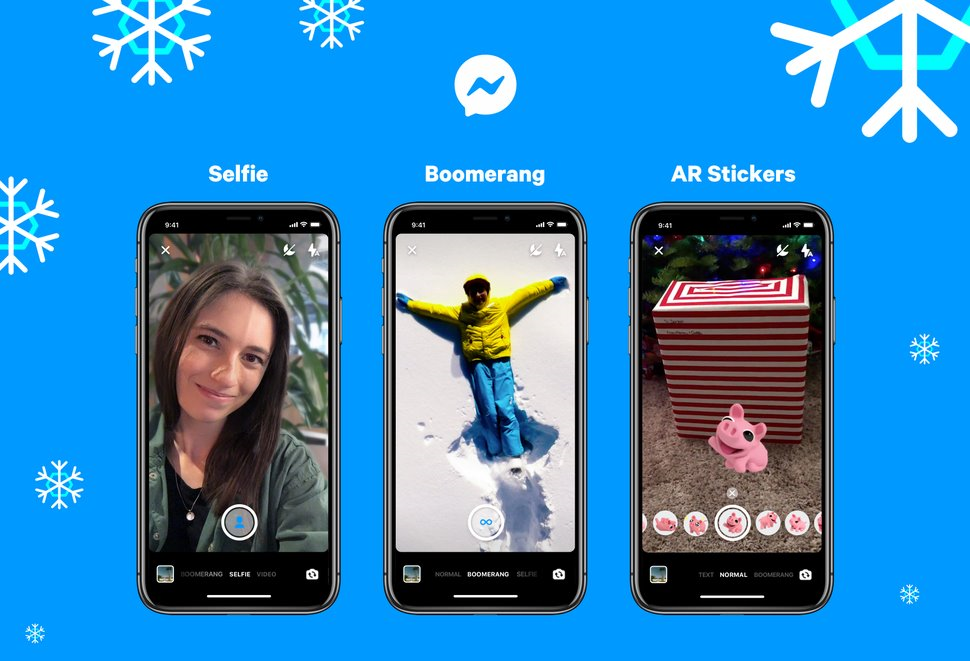 Các tính năng mới đồng nghĩa Messenger có tổng cộng 5 chế độ camera khác nhau: thông thường, video, văn bản, boomerang và selfie, chỉ 2 tháng sau khi công bố thiết kế mới cho Messenger nhấn mạnh vào sự đơn giản.