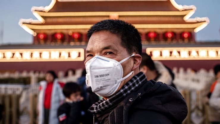 Người đàn ông đeo khẩu trang tại Thiên An Môn hôm 23/1. Ảnh: Getty Images |