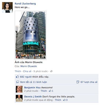 Trước đó, giới đầu tư tin rằng Facebook sẽ phát hành cổ phiếu dừng ở mức 35 USD/cổ phiếu, tương đương với giá thị trường của Facebook khoảng 95 tỷ USD. Nhưng Mark Zuckerberg đã làm tốt hơn thế.