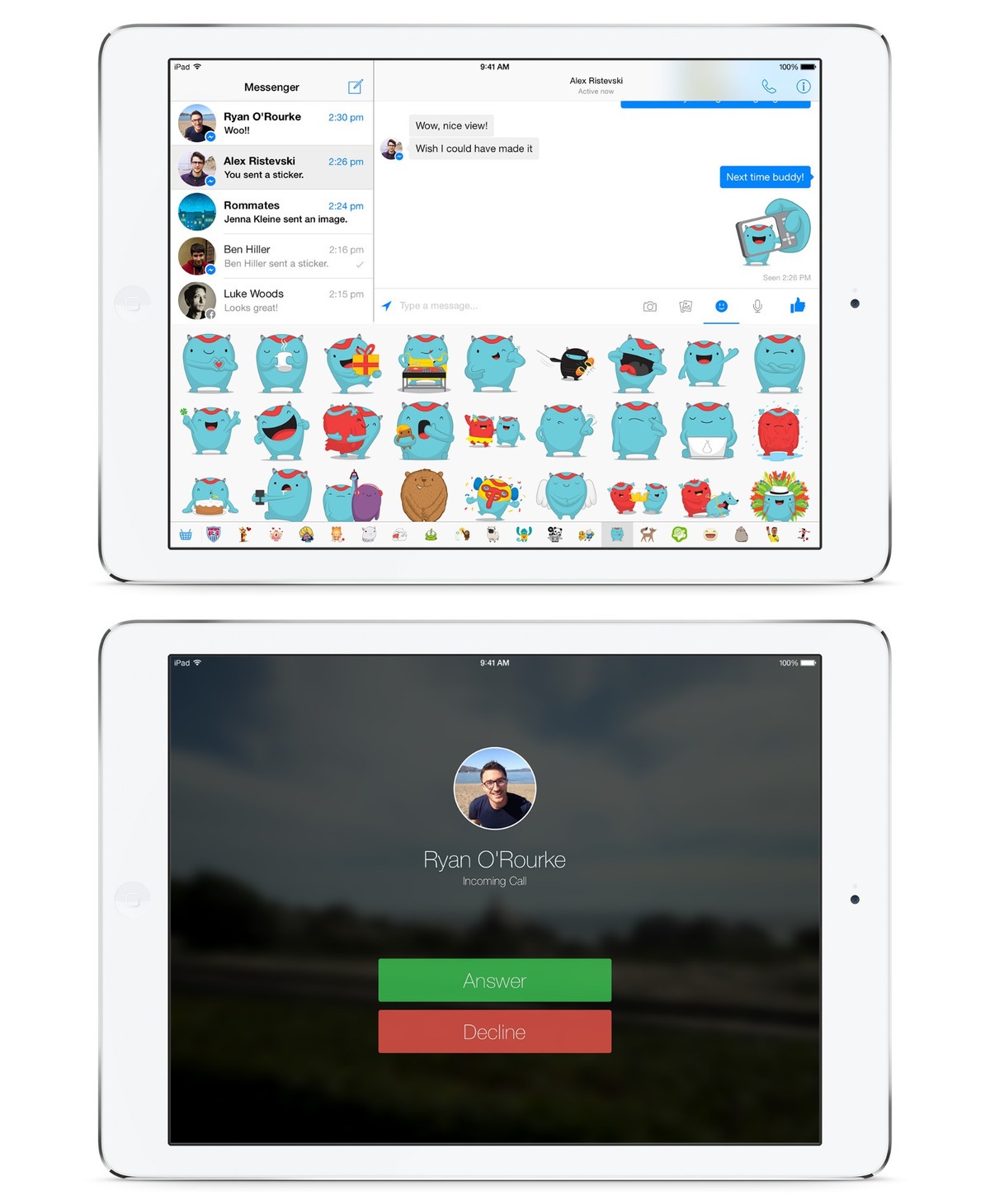 Facebook vừa phát hành bản cập nhật Facebook Messenger cho iOS được thiết kế để hoạt động trên iPad. Facebook Messenger trên iPad hỗ trợ hầu hết các tính năng của Facebook Messenger như nhãn dán sticker, cho phép dễ dàng chat theo nhóm và thực hiện cuộc gọi thoại. Tuy nhiên, phiên bản cho iPad chưa hỗ trợ một số tính năng vừa mới được bổ sung gần đây như chụp ảnh “tự sướng” ngay trên màn hình chat và nhấn giữ để ghi nhanh lại video.