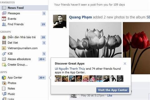 Người dùng Việt Nam nhận được thông báo về kho ứng dụng Facebook App Center từ 1/8/2012