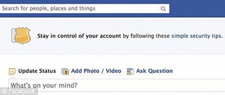 | Thông điệp anh ninh mà Facebook gửi nằm phía trên trang màn hình. |