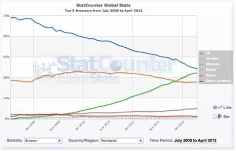 | Biểu đồ về thị phần trình duyệt từ năm 2008 - 4/2012 của StatCounter. |