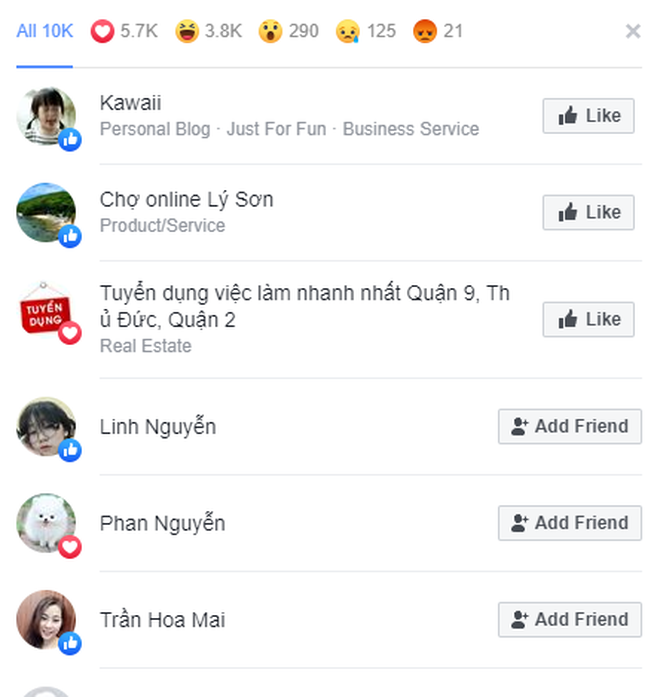 - Số đếm Like tại Việt Nam vẫn đang hiển thị và dừng ở mức 10.000, trong khi lẽ ra cũng phải biến mất, chỉ hiển thị một vài tên tài khoản đại diện (như ảnh trên).