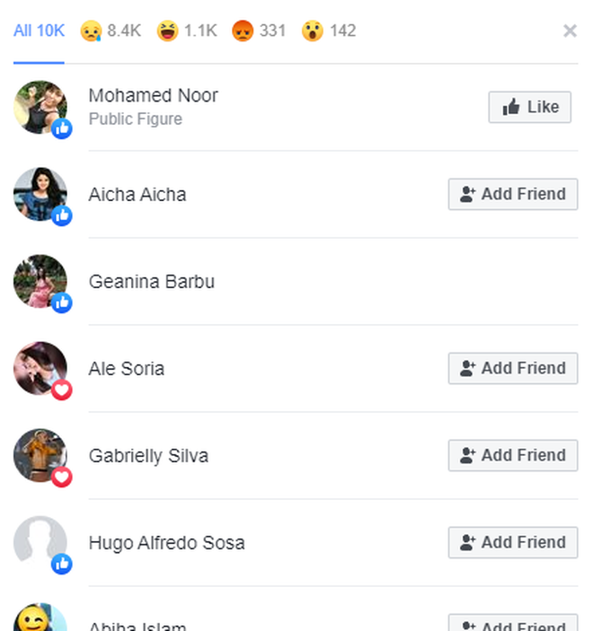 Danh sách hiển thị tương tác không còn phần liệt kê người bấm Like, chỉ còn các reaction khác.