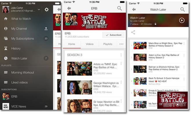 YouTube của Google cũng được cập nhật lên phiên bản mới để tối ưu cho bộ đôi iPhone 6/6 Plus. Phiên bản này cũng sẽ giúp người dùng sửa lỗi status bar ở phiên bản trước. YouTube cho iOS nặng 20.4MB và cho phép tải về sử dụng miễn phí từ App Store.