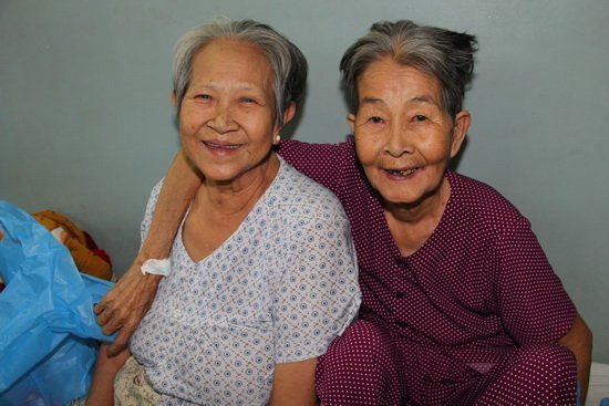 một trong hai nữ bệnh nhân cười hóm hỉnh bảo nhau: "Trông mình vẫn còn