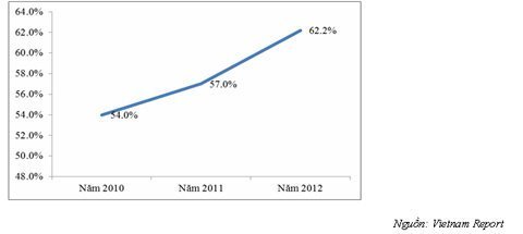 | Biểu đồ 1: Tốc độ tăng trưởng doanh thu bình quân của 500 DN thuộc các BXH FAST500 năm 2010, 2011, 2012 |