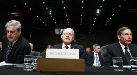 Từ trái qua, giám đốc FBI Robert Mueller, giám đốc Cơ quan tình báo quốc gia (DNI) James Clapper và giám đốc Cơ quan tình báo trung ương CIA David Petraeus trong một phiên họp tại Washington - Ảnh: Time