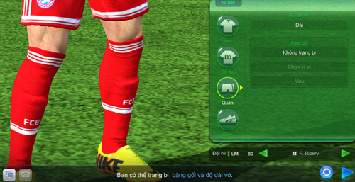Có 4 nội dung chính của phòng thay đồ là Áo, Số Áo, Quần và Giày. Trong đó, tính năng thay đổi số áo được cộng đồng game thủ khá mong chờ. Tính năng này cho phép người chơi chọn số áo cho từng cầu thủ cụ thể. Ngoài ra, những tính năng còn lại đều rất phong phú và hấp dẫn.