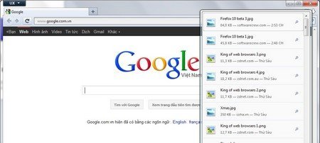 Một trong những thay đổi dễ nhận thấy nhất ở Firefox 12, đó là tính năng quản lý download trên phiên bản này. Trước đây, danh sách các file download được từ Firefox sẽ được quản lý từ 1 cửa sổ riêng biệt, nhưng giờ đây, với Firefox 12, người dùng chỉ nhấn vào nút mũi tên ở góc trên bên phải trình duyệt, danh sách các file download được sẽ liệt kê đầy đủ từ một hộp thoại nhỏ sổ xuống.