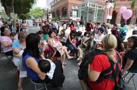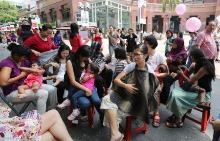 Nếu có mặt tại đường Orchard, Singapore vào trưa 25/8, bạn sẽ được chứng kiến một hình ảnh vô cùng độc đáo đó là hơn 15 bà mẹ "bỗng dưng" ngồi xuống cho con bú trước mặt mọi người trong khoảng 20 phút.