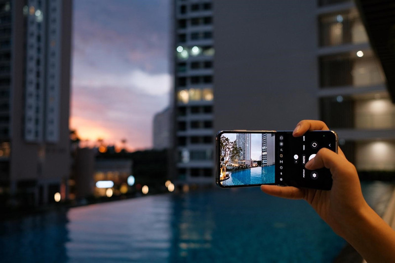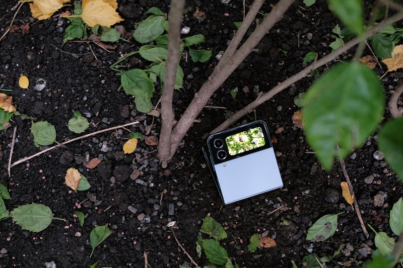 Nếu như chế độ FlexCam của “đàn anh” Z Fold4 sắp xếp camera theo chiều ngang, phù hợp với các góc nhìn truyền thống thì cụm camera dọc của Z Flip4 lại trẻ trung và hiện đại, phù hợp với giới trẻ hơn. Không cần phức tạp, chỉ đơn giản là đặt Z Flip4 trên mặt sàn, người dùng đã có thể tạo ra những góc nhìn mới lạ, thú vị, tận dụng những hiệu ứng quang học để kéo giãn vật thể một cách tự nhiên.