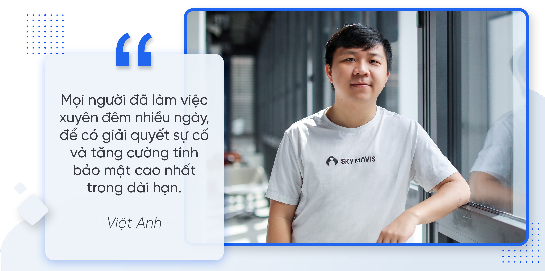 Nói về hoàn cảnh vụ tấn công, Việt Anh cho biết đội ngũ đã rất choáng váng với thiệt hại quá lớn, nhưng nhanh chóng lấy lại bình tĩnh để xử lý các vấn đề. "Bất kỳ hệ thống nào dù kín kẽ đến đâu vẫn có thể có những lỗ hổng bảo mật”, Việt Anh chia sẻ, “Mọi người đã làm việc xuyên đêm nhiều ngày, để giải quyết sự cố và tìm phương án tăng cường tính bảo mật cao nhất trong dài hạn.”