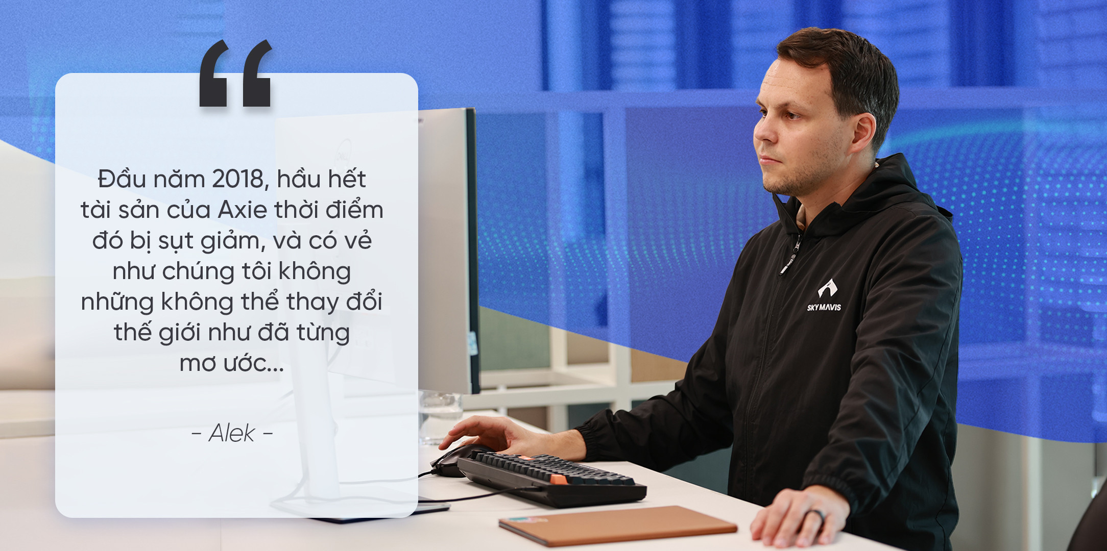 “Đầu năm 2018, hầu hết tài sản của Axie thời điểm đó bị sụt giảm, và có vẻ như chúng tôi không những không thể thay đổi thế giới như đã từng mơ ước, mà thậm chí còn có thể phá sản”, Aleksander Leonard Larsen - Giám đốc vận hành (COO) Sky Mavis chia sẻ.