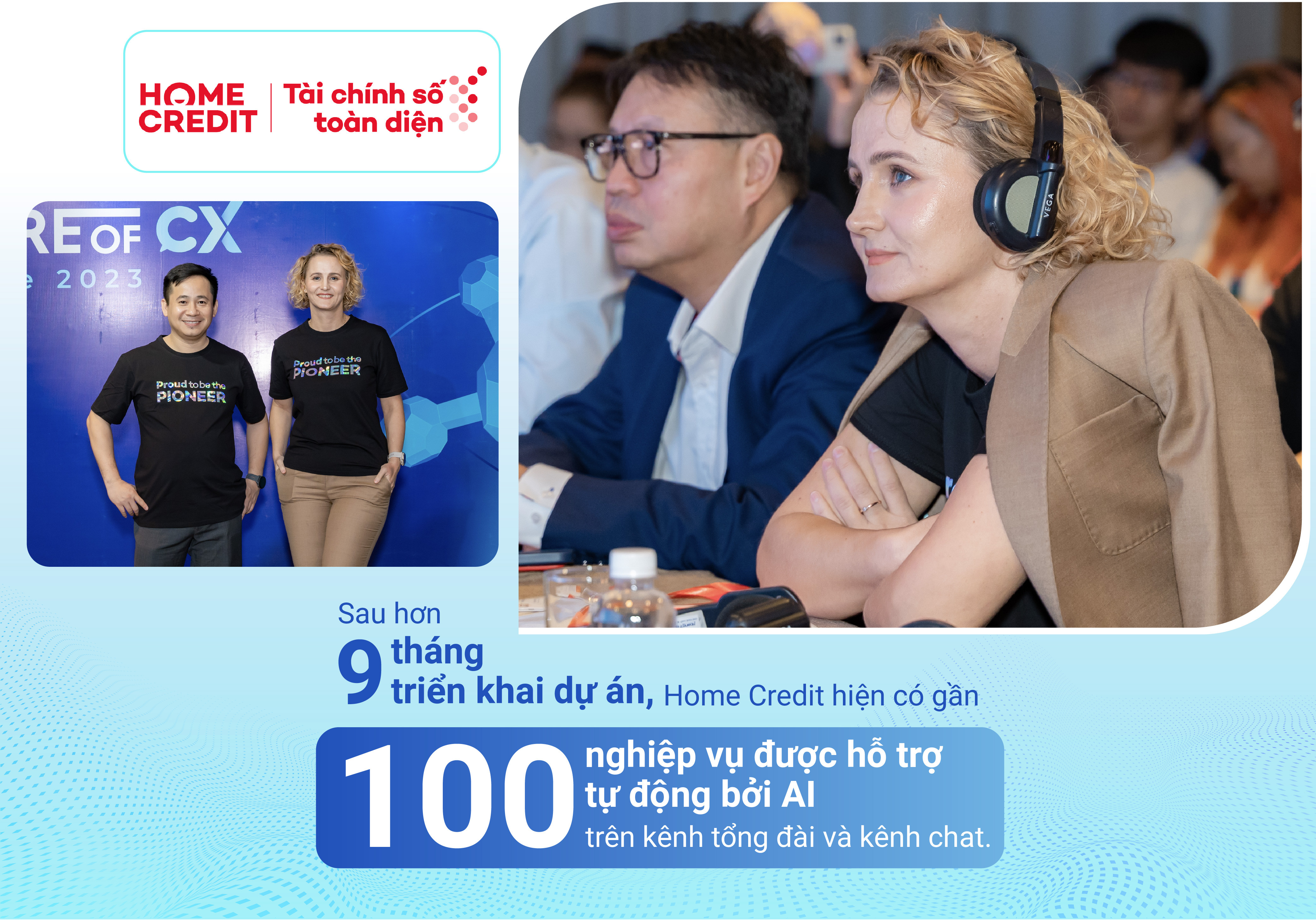 Trong giai đoạn từ tháng 11/2022 - 7/2023, Home Credit Việt Nam phối hợp cùng FPT Smart Cloud đã áp dụng nhiều công nghệ và giải pháp AI vào quy trình chăm sóc khách hàng như đa dạng hóa giọng nói của Voicebot từ nhiều vùng miền.