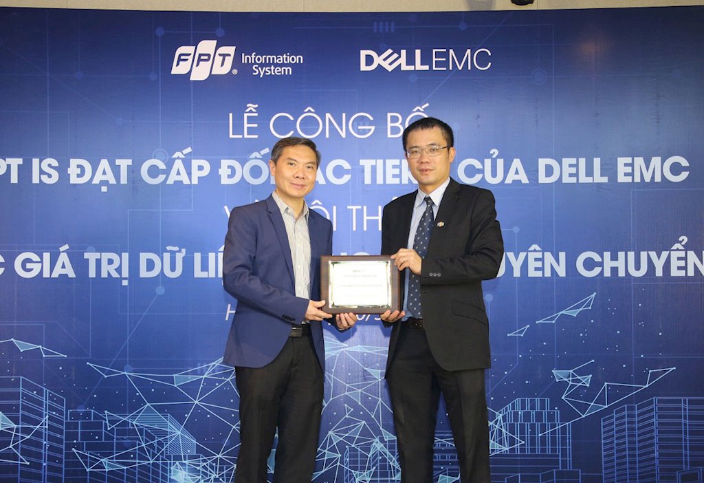 Chương trình đối tác Dell EMC dành cho các đối tác cung cấp giải pháp lưu trữ, bao gồm các hạng như: hạng vàng, hạng bạch kim và hạng ti-tan (cấp cao nhất). Để trở thành đối tác cao cấp nhất của Dell EMC, FPT IS đã đạt được mức doanh số ấn tượng vào năm 2018, và cam kết mức tăng trưởng ít nhất 20% trong các năm tiếp theo. Trong vòng 6 tháng tới, FPT IS sẽ xây dựng năng lực triển khai cho các dòng giải pháp lưu trữ, giải pháp hội tụ và sao lưu bảo vệ dữ liệu như: VxRail, Data Domain, Isilon, XtremIO, vv