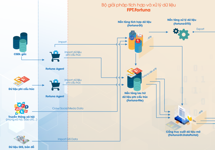 Trước thực tế đó, nhu cầu về một giải pháp Make in Viet Nam, phù hợp với thực trạng của các địa phương trong nước trở nên lớn hơn bao giờ hết. Do đó, FPT IS đã phát triển Nền tảng tích hợp và xử lý dữ liệu - FPT.Fortuna. Giải pháp là lời giải cho bài toán xây dựng kho dữ liệu chính phủ tại địa phương, các kho dữ liệu chuyên ngành và thúc đẩy xây dựng thành phố thông minh.
