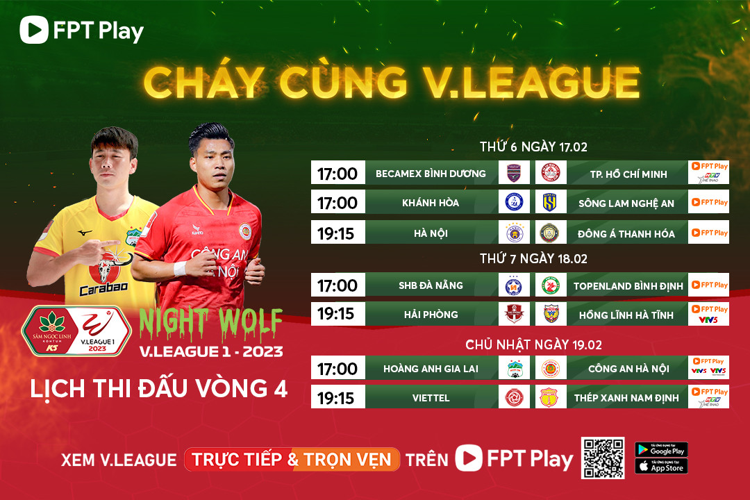 Người hâm mộ cả nước có thể đón xem toàn bộ các trận cầu của Night Wolf V.League 1-2023 tại website fptplay.vn và ứng dụng FPT Play https://fptplay.vn/ung-dung/download.