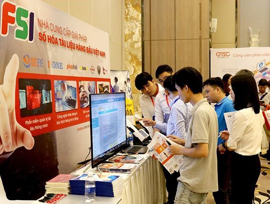 SI giới thiệu đến các khách tham dự về ứng dụng phần mềm quản trị tài liệu thông minh DocEye, công nghệ nhận dạng và trích xuất thông tin IONE của FSI trong việc xây dựng hệ thống dùng chung của chính phủ điện tử và đô thị thông minh hồi tháng 7/2018. |