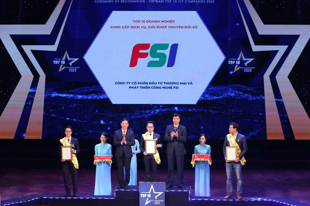 Tại lễ trao giải năm nay, FSI được VINASA vinh danh tại 2 hạng mục quan trọng “Top 10 doanh nghiệp cung cấp dịch vụ, giải pháp Chuyển đổi số” và “Top 10 doanh nghiệp cung cấp giải pháp Chính phủ số” tại Việt Nam. Đây là lần thứ 4 liên tiếp FSI được vinh danh tại sự kiện này.