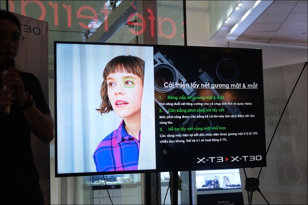 Cũng như X-T3, X-T30 là sản phẩm có chức năng và hiệu suất AF tốt nhất trong dòng máy ảnh X Series. Cùng với việc xử lí hình ảnh nhanh nhờ vào bộ xử lí X-Processor 4 và nâng cấp thuật toán AF giúp nâng cao mức độ chính xác nhận diện gương mặt/ mắt. Chức năng chọn gương mặt chính sẽ ưu tiên cho người được chọn khi có nhiều gương mặt được máy ảnh nhận diện trong một khung ảnh.