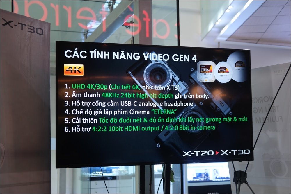 X-T30 được cải tiến tính năng quay video 4K/30P, với khả năng ghi lại âm thanh độ phân giải cao và chức năng lấy nét mắt trong suốt quá trình quay video.
