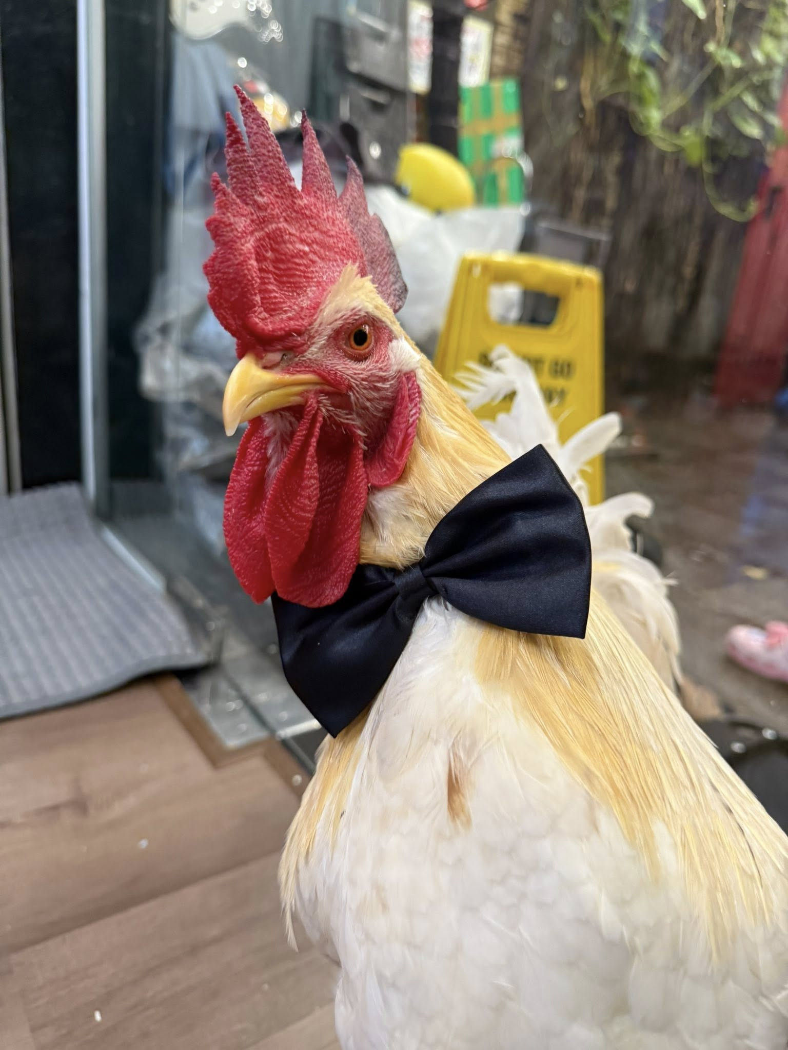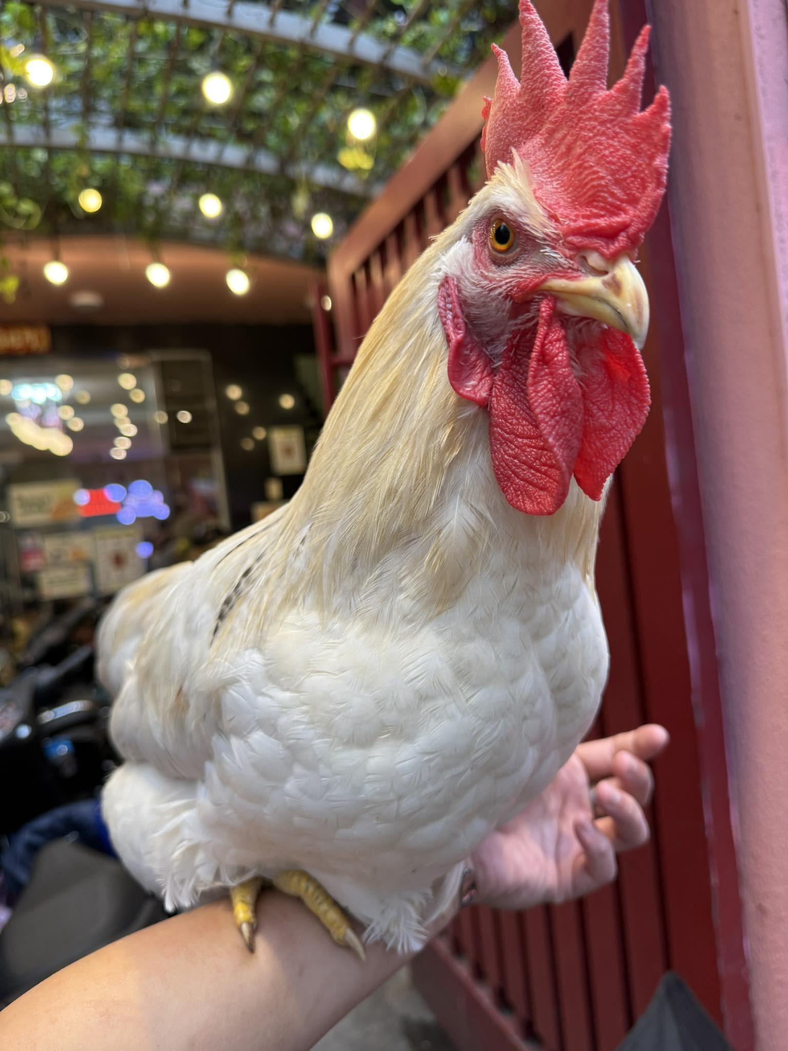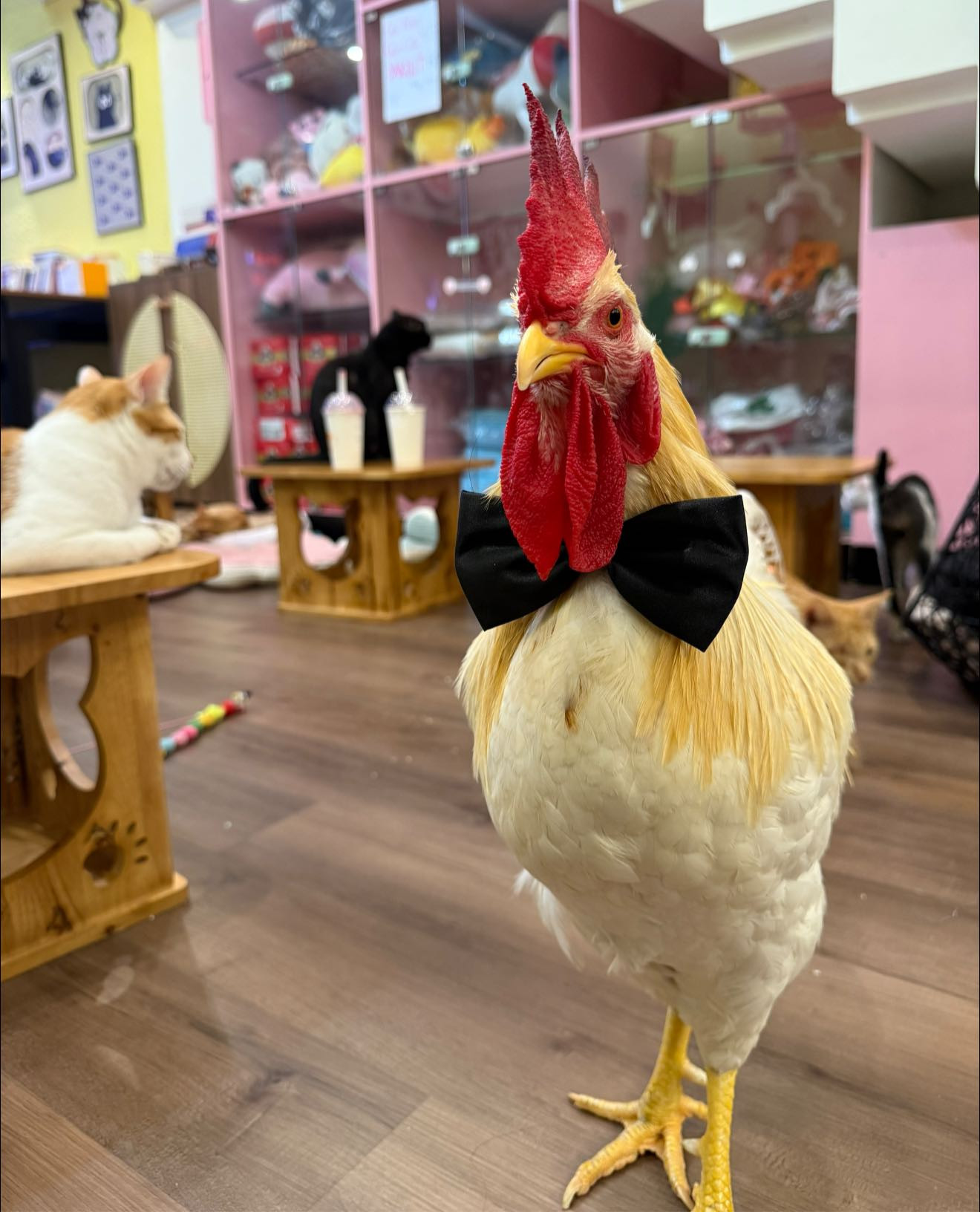 Con gà đi lạc được nuôi tại tiệm cà phê ở TPHCM và được đặt tên là Jolibee