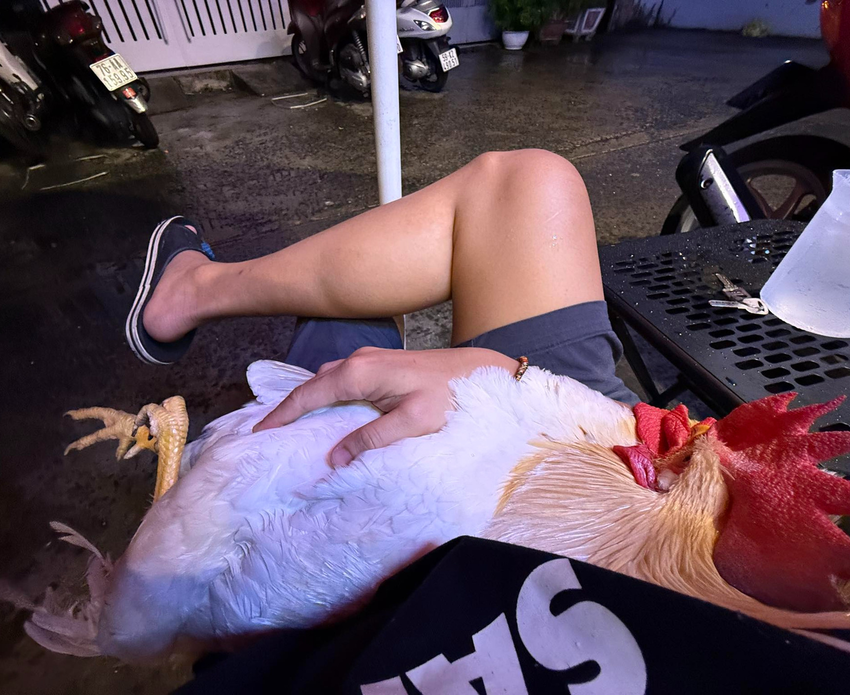 Thời điểm đó, con gà còn rất nhỏ, chỉ bằng ba ngón tay. Nghĩ có thể xe chở gà đi ngang qua làm rơi, lại thương con vật bé xíu, Ngọc cùng nhân viên giữ lại nuôi, chăm sóc như “con cưng”.