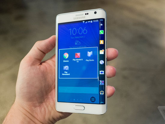 Cùng đó, Galaxy Note Edge dùng màn hình uốn cong lạ mắt. Cạnh của màn hình bao lấy cạnh phải của thiết bị, cho phép tương tác độc đáo. Máy dùng màn hình QHD 5.6 inch độ phân giải 1600 x 2560 pixel. Về cấu hình, máy dùng chip Snapdragon 805 hoặc Exynos 5433, Android 4.4, máy ảnh 16MP ổn định hình ảnh quang học và bút cảm ứng S Pen, pin 3.000mAh, cổng USB 2.0…