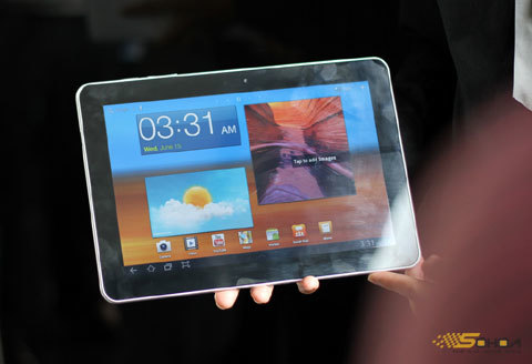 | Galaxy Tab 10.1 với thiết kế siêu mỏng, máy có giá 14 triệu. Ảnh: Quốc Huy. |