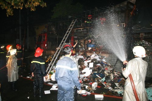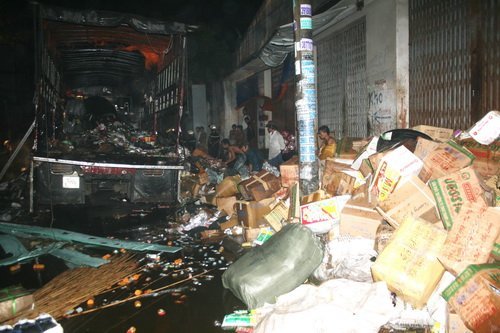 Ngọn lửa bốc lên khá cao đỏ rực cả một đoạn đường giữa trời đêm. Công nhân bốc xếp của đại lý và bà con chung quanh ra sức dập lửa nhưng do lửa phát xuất từ giữa đống hàng hóa trên xe nên đã bất lực.