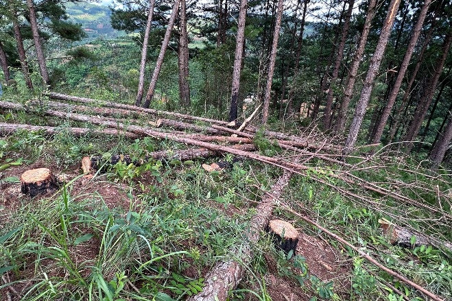 Qua kiểm đếm, cơ quan chức năng xác định khoảng 143 cây thông rừng, trong diện tích khoảng 1.400 m2 bị cưa sát gốc nằm la liệt, xếp lớp. Lá cây vẫn còn tươi, thân cây ứa nhựa. Chiều dài thân cây trung bình 13-20cm, đường kính thân cây 13-45cm. Rừng thông trên trồng năm 1997, được giao khoán cho người dân quản lý, bảo vệ.