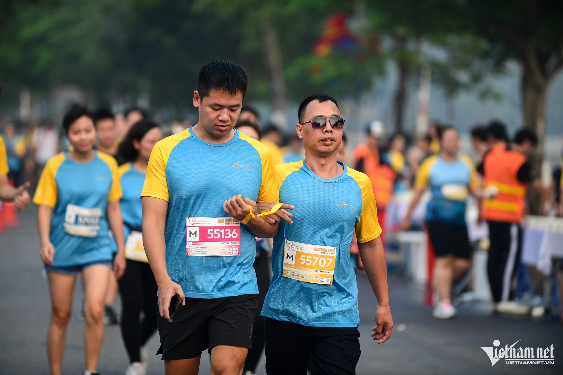 Không khí se lạnh của buổi sáng mùa thu tại hồ Tây khiến các VĐV cảm thấy thích thú và sảng khoái.