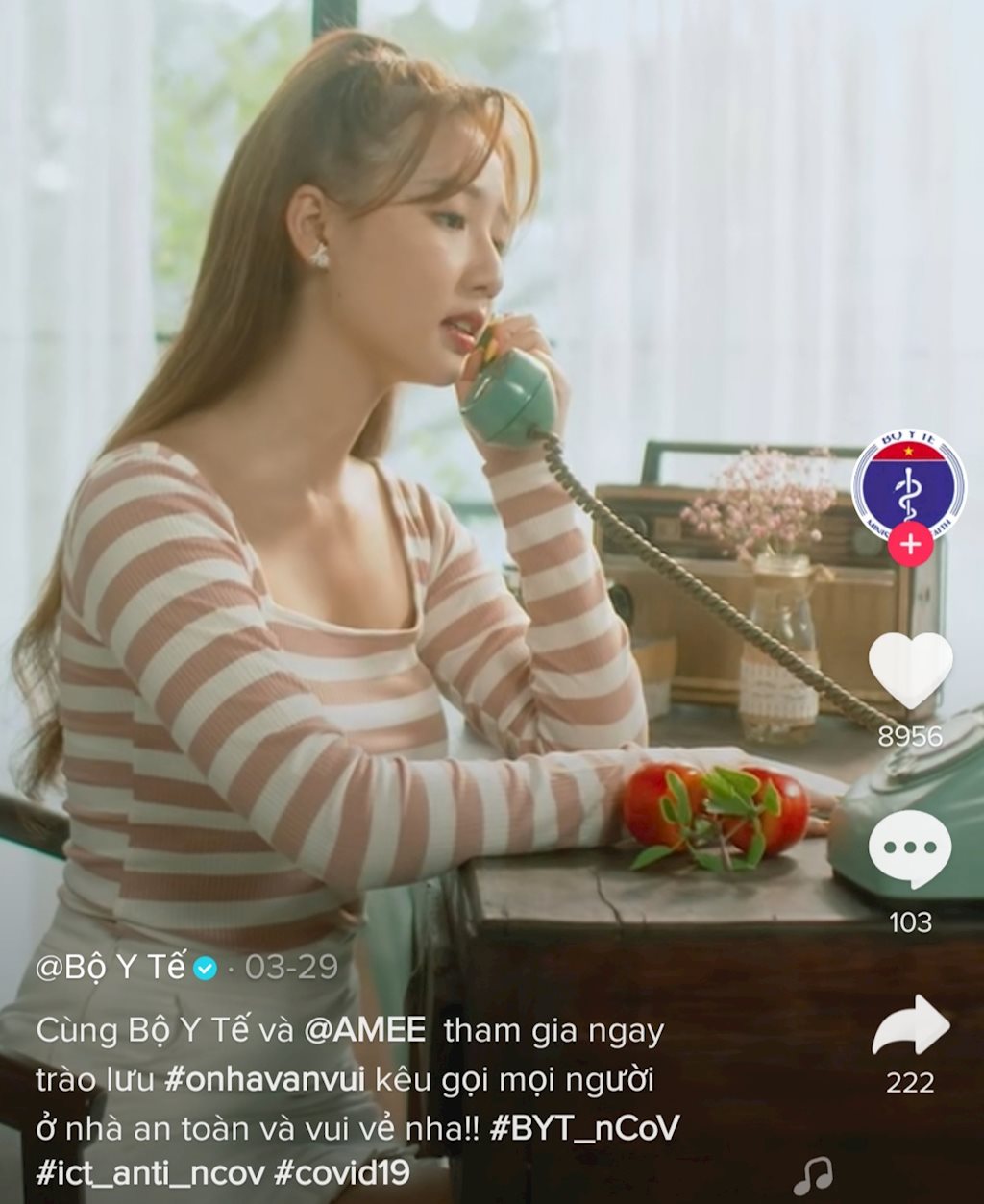 Video có lượt xem nhiều thứ hai là chiến dịch do Bộ Y tế phát động, với sự đồng hành của ca sĩ Amee trong chương trình kêu gọi Ở nhà vẫn vui. Video này nhận được hơn 720 ngàn lượt xem. Cô ca sĩ nổi tiếng với bài “Anh nhà ở đâu thế” sau đó tổ chức livestream hướng dẫn các biện pháp chăm sóc sức khoẻ mùa dịch.